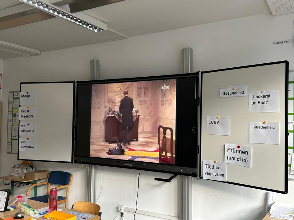 Die Plattdeutsch AG hat zum Start ins neue Jahr mehrere Bräuche kennenlernt. Sie guckten den traditionellen Kurzfilm „Dinner for one“ auf Plattdeutsch und aßen dazu Neujahrswaffeln. Zudem wünschten sie sich nette Grüße zum neuen Jahr.