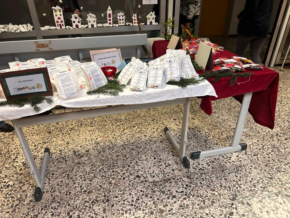 För de Wiehnachtsbasar hett de Plattdütsk AG Kekse mit plattdütsk Seggwiesen backt. Disse wurren denn up de Basar verköfft. Nafolgend Spröökjes weren up de Kekse to lesen.