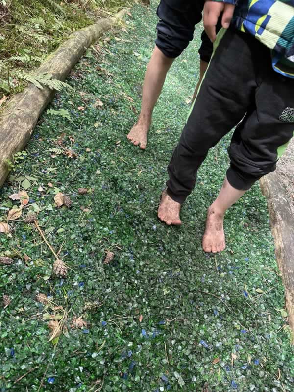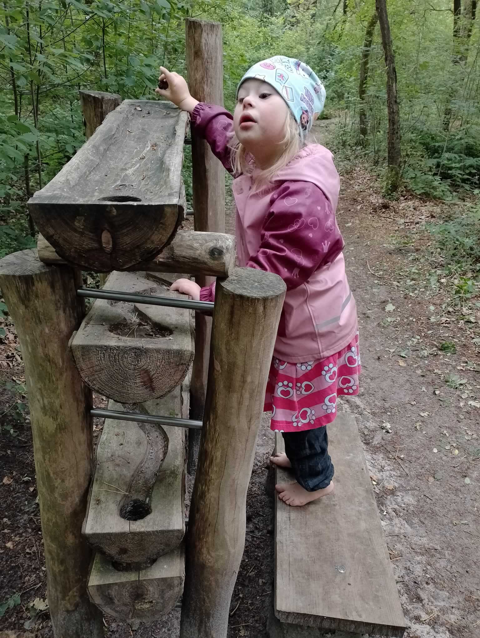 Die erste Herausforderung erwartete uns gleich zu Beginn des Pfads. Es war nicht nur kalt, sondern auch nass und matschig! Mutig sind wir durch Schlamm und Wasser gewatet. Danach folgte der Gang über Steine, Holz, Muscheln und sogar Scherben. Zwischendurch konnte auch balanciert, geklettert und gespielt werden.