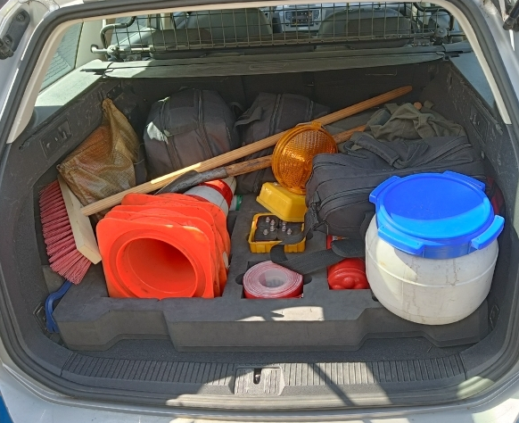 Der Streifenwagen hat ein Funkgerät und ein Blaulicht.
