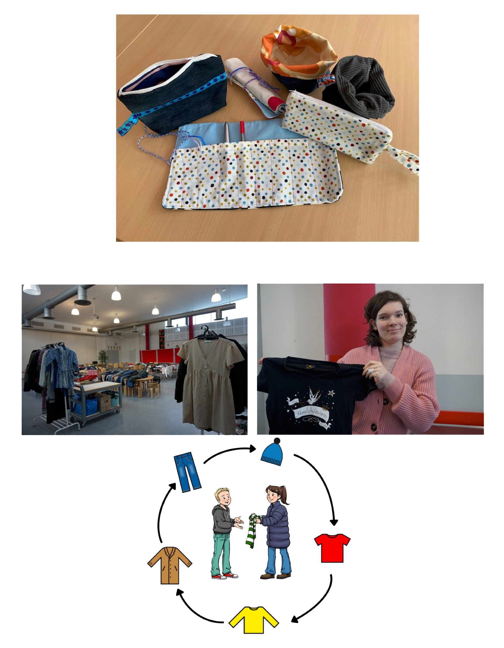 Wir haben alte Kleidung umgestaltet. Es gab auch eine Kleidertausch-Party. Jetzt machen wir das regelmäßig